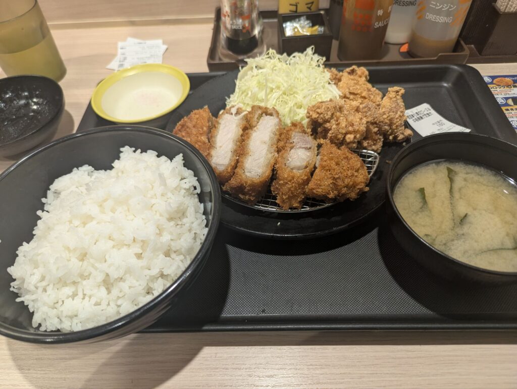 ご飯もの 2025年12月8日 投稿者:赤雪兎 松のや で定食を 昨日松のやに行って定食を食べてきた。 内容的にはとんかつと唐揚げの定食で、ご飯は大盛り。 松乃屋はご飯味噌汁が定食の場合おかわりできるのでかなり嬉しい。 ただ今回に関してはウエストを気にしておかわりせずに大盛りで終わりにした。 メニュー的にも厚切りと歌っているのでとんかつは厚みがあったのだが何だろう美味しさがそんなに感じなかった唐揚げ、味噌汁の方が美味しい。 そんな感じの食事だった