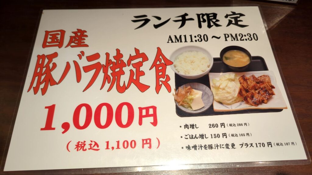店舗内の見える位置に設置されている。焼き台にて注文した。肉が焼かれていく。調理人はバーナーを持ってじゅうじゅうじゅうじゅう焼いていた。まあ、場所的によく見えないので、他のメニューや調味料を確認し待っていた