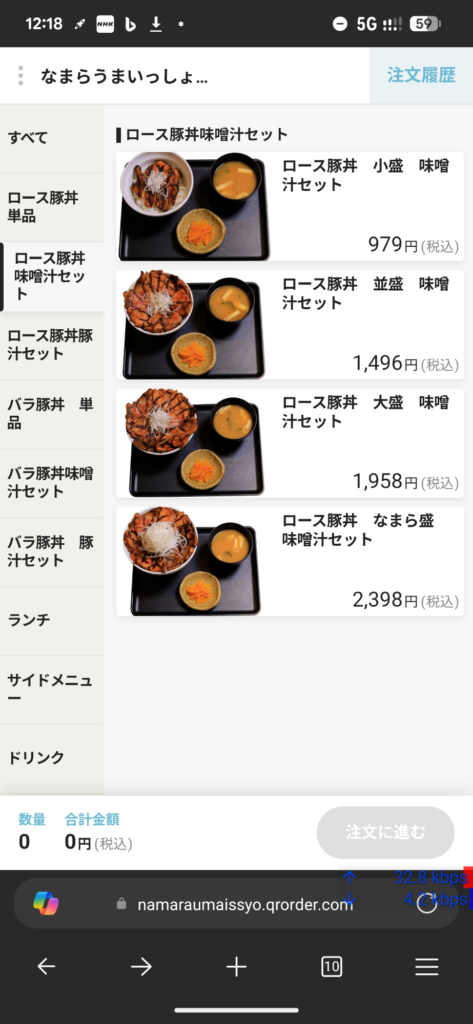 カウンターに到着して席に設置されている QR コードから注文を行った